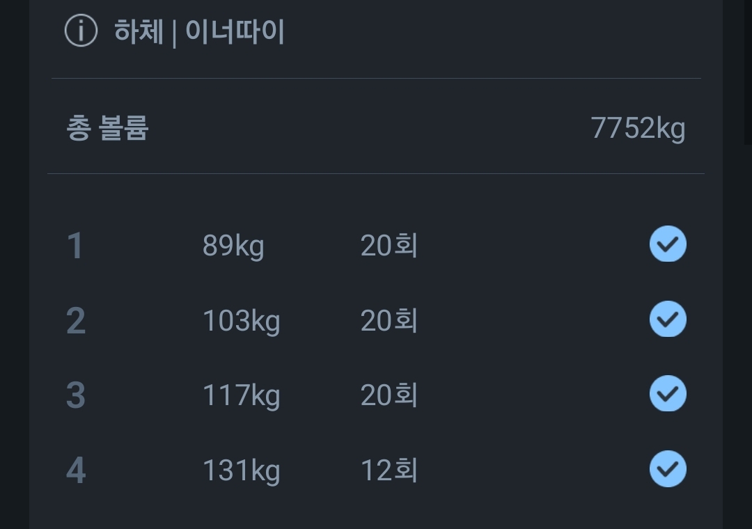 평소 고중량할 때보다 가벼운 무게라 가볍게 봤는데....역시 개수로 때려버리니 쉽지 않더라구요 ㄷㄷㄷ